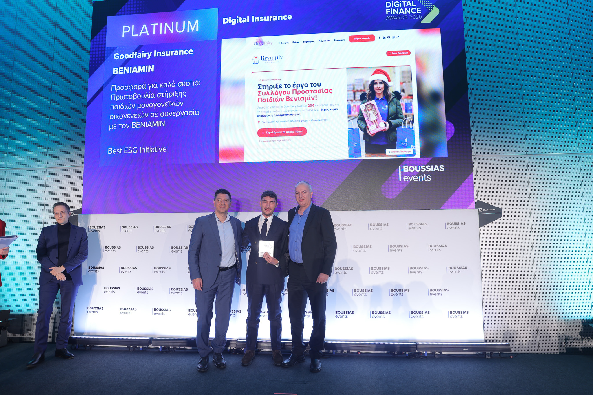 Στη σκηνή των βραβείων, το Gold βραβείο παρέλαβε ο Πρόεδρος του ΒΕΝΙΑΜΙΝ, κ. Αριστείδης Πετρίδης, ενώ το Platinum βραβείο παρέλαβε ο Chief Impact Officer (CIO) της Goodfairy, κ. Αλέξανδρος Μήτσης, πλαισιωμένοι από τον CEO της εταιρείας.