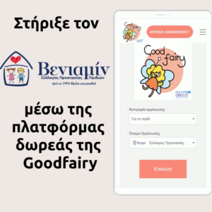 - Ανέξοδα μέσω της ασφάλισης του αυτοκινήτου σας (ή της ασφάλειας υγείας σας) στην GoodFairy επιλέγοντας τον Σύλλογο ΒΕΝΙΑΜΙΝ ως τον Σύλλογο που θα ωφεληθεί